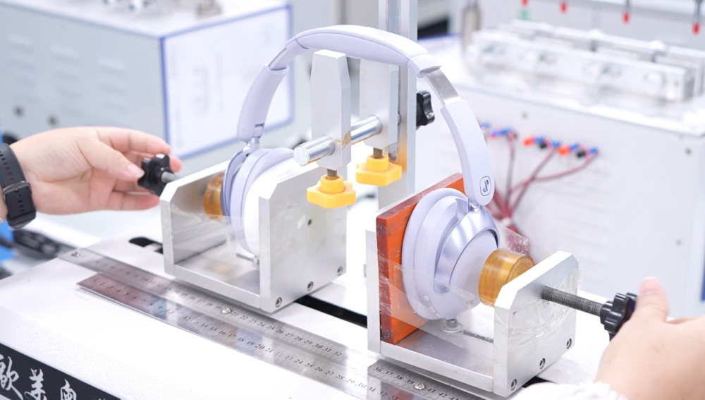 廣東眷蜀科技有限公司車間內(nèi),員工對(duì)耳機(jī)產(chǎn)品進(jìn)行技術(shù)檢測(cè)。受訪者供圖