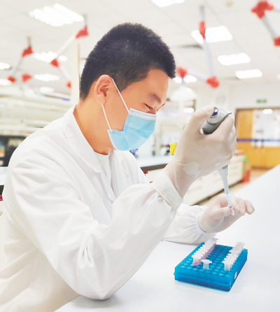 聶龍宇在提取細(xì)胞核酸標(biāo)本。東陽光藥業(yè)供圖