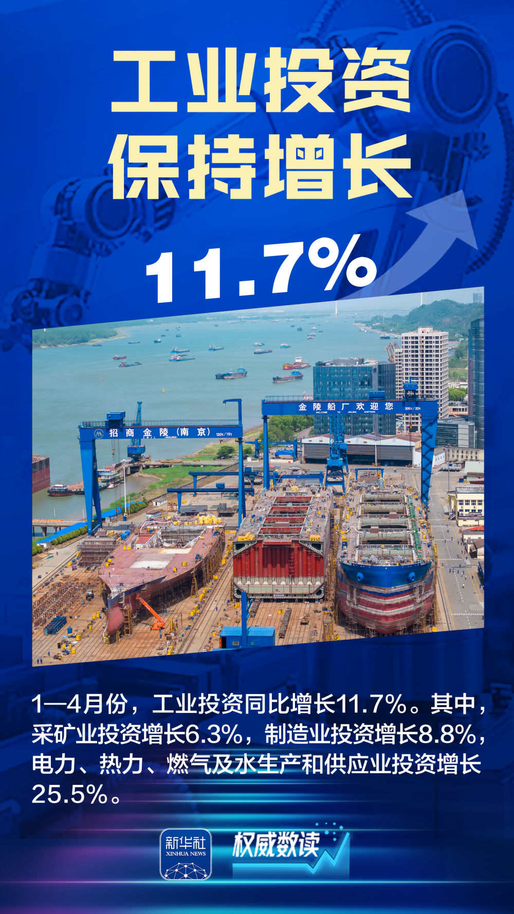 國家統(tǒng)計局、工信部等部門最新發(fā)布的數(shù)據(jù)顯示,今年前4個月,我國工業(yè)企業(yè)利潤增長加快、工業(yè)投資保持增長、裝備制造業(yè)引領(lǐng)作用突出、“兩新”政策效應(yīng)持續(xù)顯現(xiàn)……一系列數(shù)據(jù),充分展現(xiàn)出我國工業(yè)經(jīng)濟的強大韌性和抗沖擊能力。