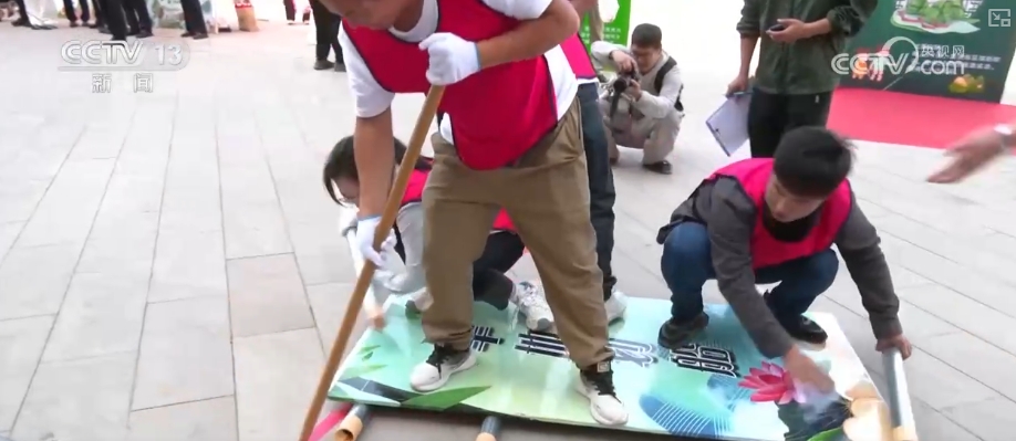活動現場,最引人注目的當屬充氣龍舟競速賽。大家以腿為槳,以手為舵,考驗團隊的配合與默契。在劃旱船環(huán)節(jié),四人一組,兩人站著撐槳,在其余兩人的配合下將平板向前移動。