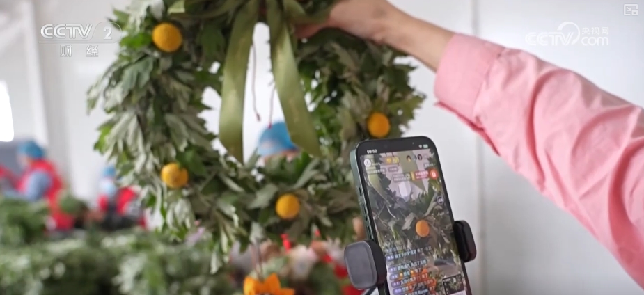在江蘇新沂的一家艾草企業(yè)直播間里,主播正熱情地介紹新款艾草文創(chuàng)產品,線上訂單源源不斷。一旁的生產線上,工人們也正在熟練地制作艾草花環(huán)。端午臨近,這款艾草花環(huán)日均銷量突破萬件。