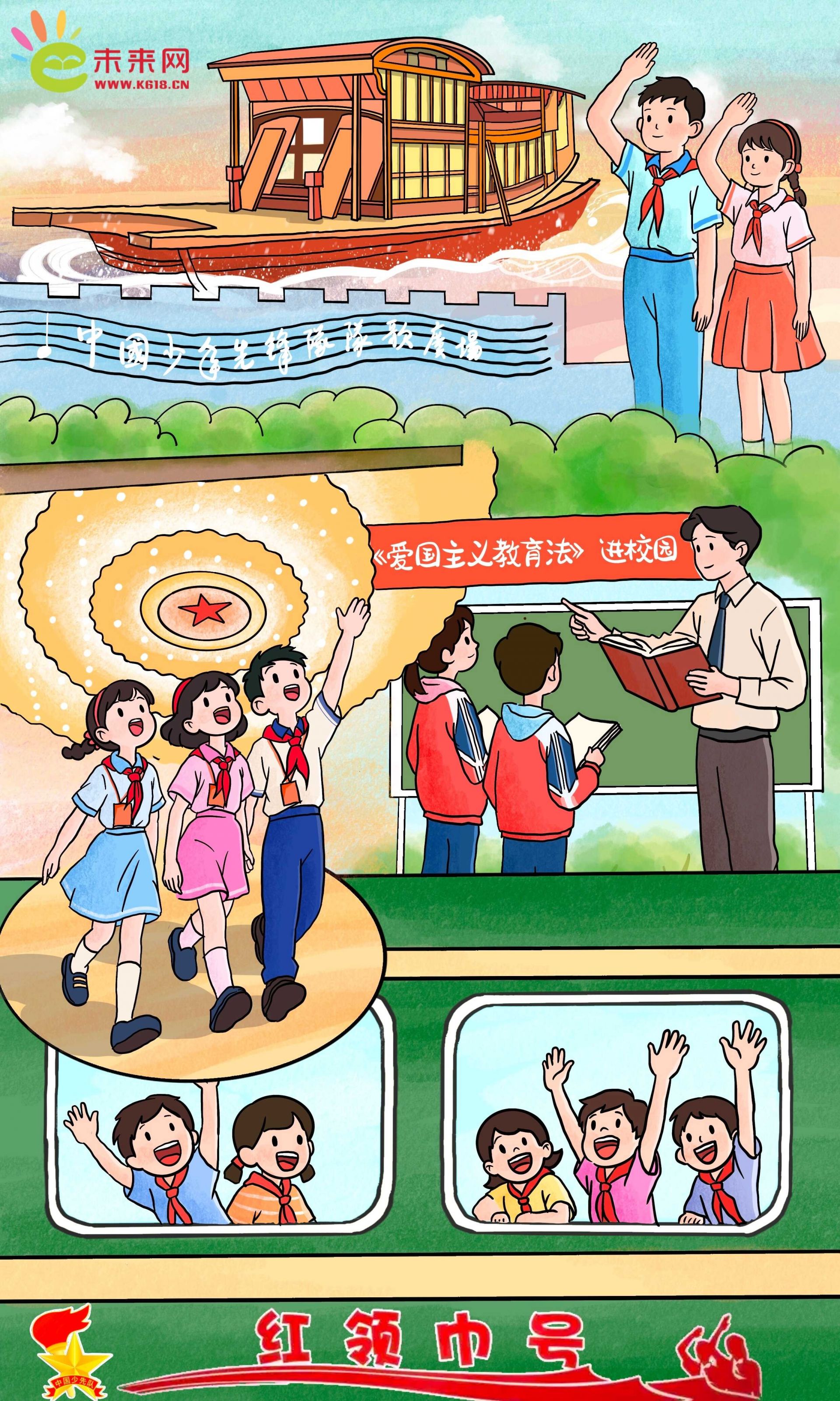 《新時(shí)代愛(ài)國(guó)主義教育實(shí)施綱要》《中共中央關(guān)于全面加強(qiáng)新時(shí)代少先隊(duì)工作的意見(jiàn)》《中華人民共和國(guó)愛(ài)國(guó)主義教育法》等一系列制度規(guī)范,護(hù)航愛(ài)國(guó)主義教育持續(xù)走深走實(shí);各級(jí)少先隊(duì)積極組建“紅領(lǐng)巾巡講團(tuán)”,以豐富形式助力講好黨的創(chuàng)新理論等,都不斷夯實(shí)著廣大少年兒童堅(jiān)定不移聽(tīng)黨話、跟黨走的決心和信念。