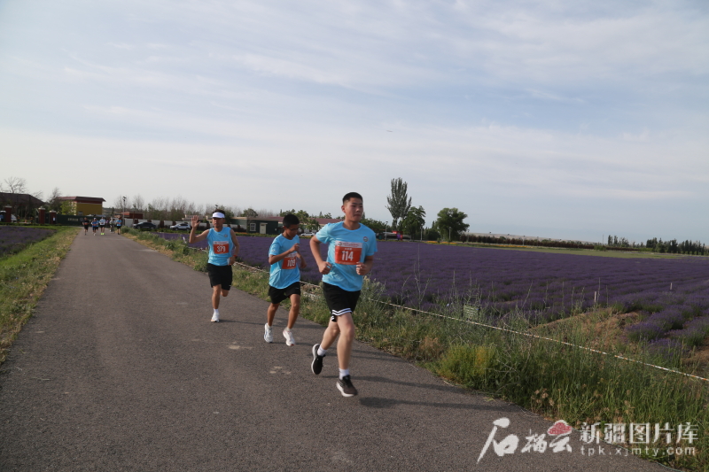 5月31日,霍城縣“2025蘇韻伊情·霞路相逢(霞2·芳香霍城)商學(xué)院越野接力賽”開跑。圖為參賽選手跑過一片薰衣草園。石榴云/新疆日?qǐng)?bào)記者 宋衛(wèi)國 攝