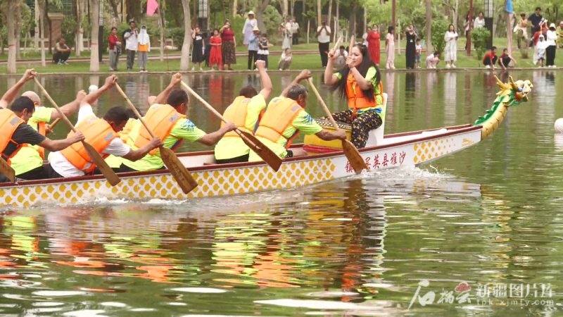 5月31日,2025年“我們的節(jié)日·端午”自治區(qū)新時(shí)代文明實(shí)踐示范活動(dòng)暨巴州“中交綠城杯”第四屆端午龍舟賽現(xiàn)場(chǎng)。馬占芳 攝