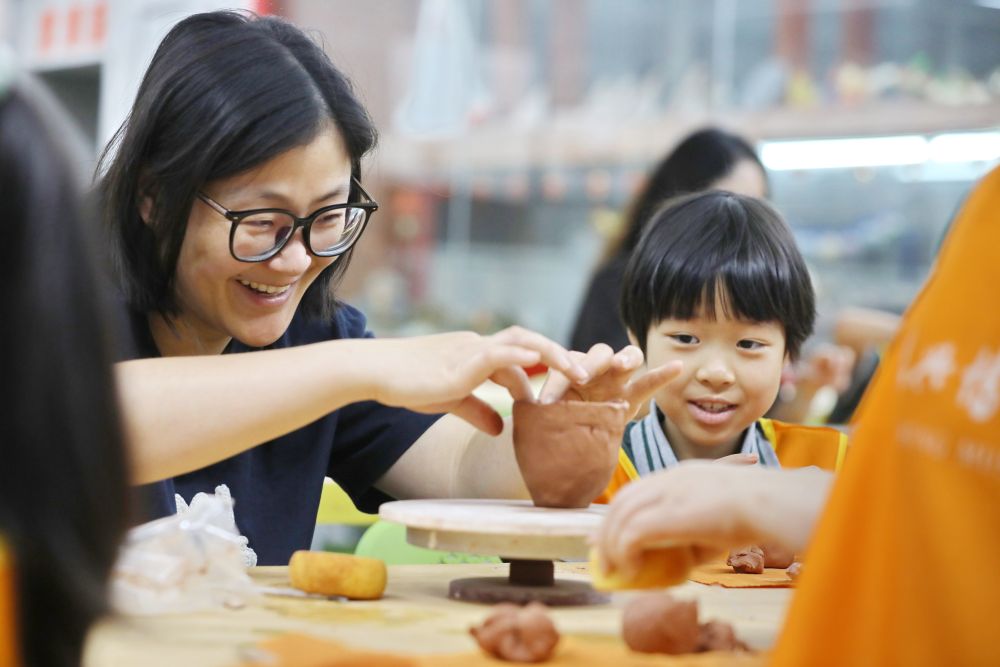 圖為在浙江省嘉興博物館,南湖實驗學(xué)校萬興校區(qū)一年級小學(xué)生和家長一起參加“泥塑悟非遺,親子迎端午”泥塑制作活動。新華社發(fā)(金鵬 攝)