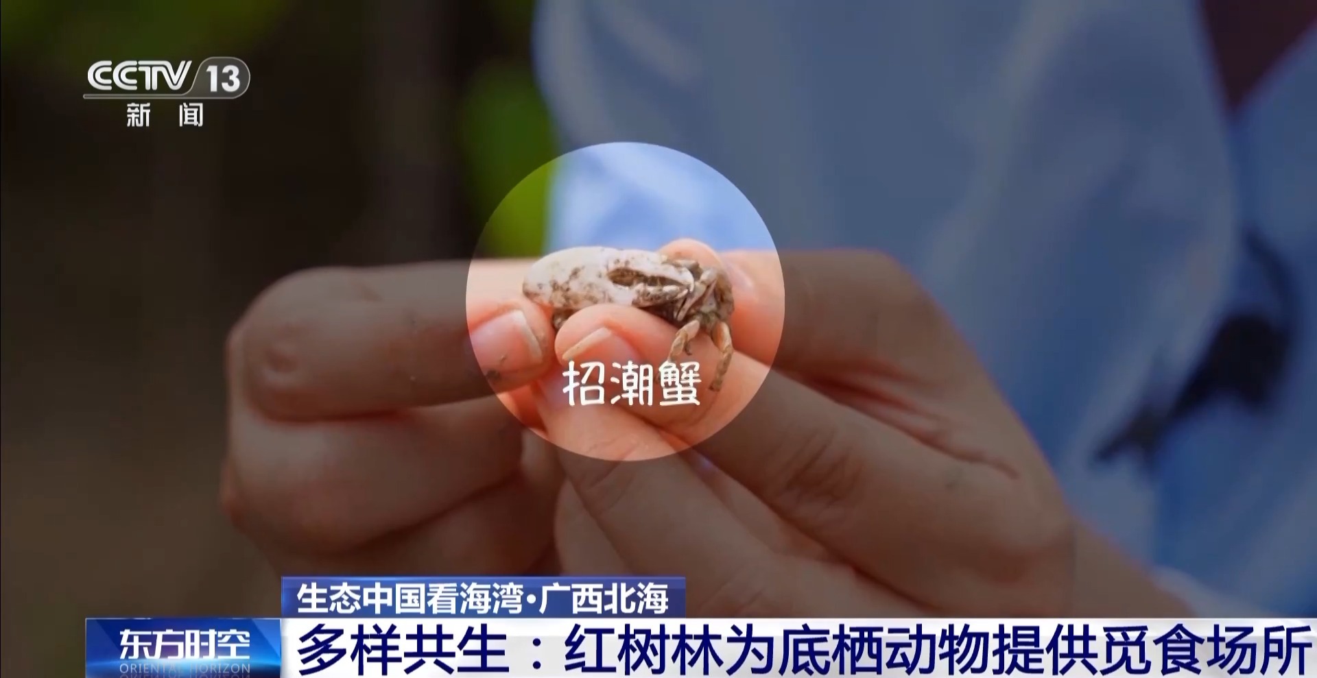 總臺(tái)記者 王潔:我手上就有兩只非常可愛的蟹類,非常小巧玲瓏,很可愛活潑,叫擬相手蟹,喜歡爬樹?;野咨氖谴菩罚坌穭t是個(gè)更大而且全身通紅,更加威風(fēng)凜凜,它們叫“招潮蟹”。