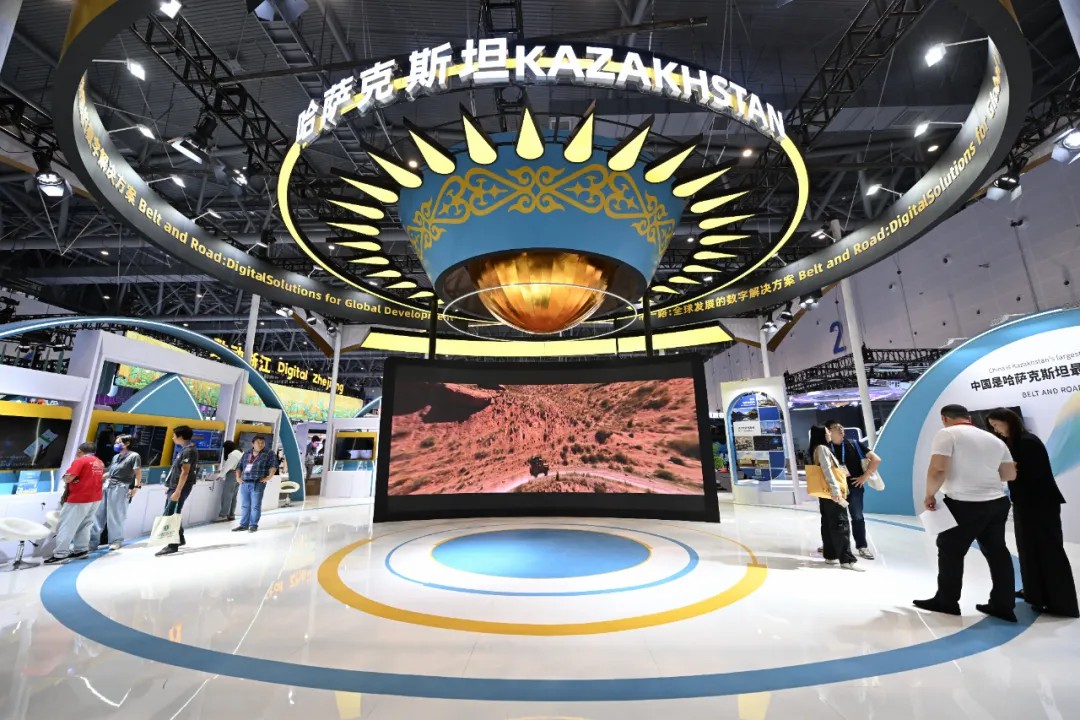 2024年9月24日,在杭州舉行的第三屆全球數(shù)字貿(mào)易博覽會(huì)上哈薩克斯坦展區(qū)吸引參觀者參觀。中新社記者王剛 攝
