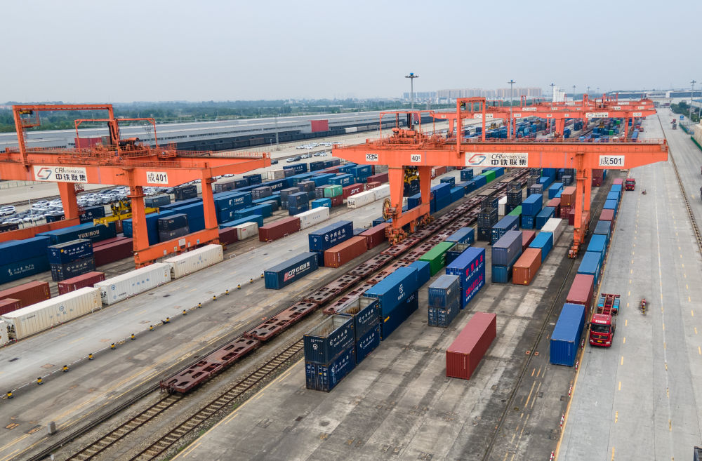這是成都國際鐵路港(2024年6月13日攝,無人機(jī)照片)。 新華社記者 唐文豪 攝