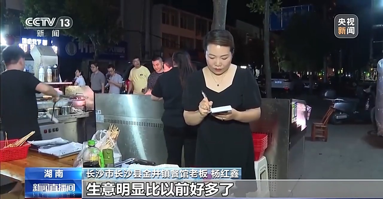 長(zhǎng)沙市長(zhǎng)沙縣金井鎮(zhèn)餐館老板 楊紅鑫:自從天文臺(tái)一開,來(lái)了很多游客,看完星星之后,就來(lái)我們街上吃夜宵,生意明顯比以前好多了。