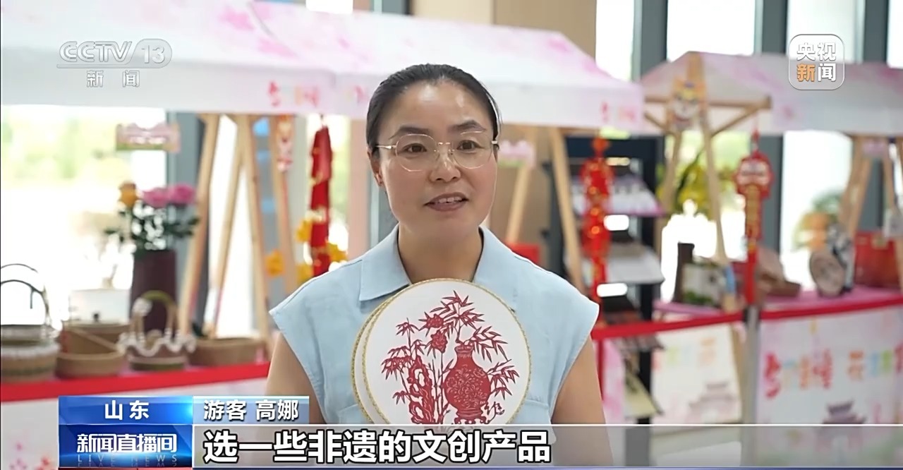 游客 高娜:經(jīng)常跟朋友們來(lái)這里逛一逛,選一些非遺的文創(chuàng)產(chǎn)品,今天選了幾把這個(gè)剪紙的折扇,特別喜歡。