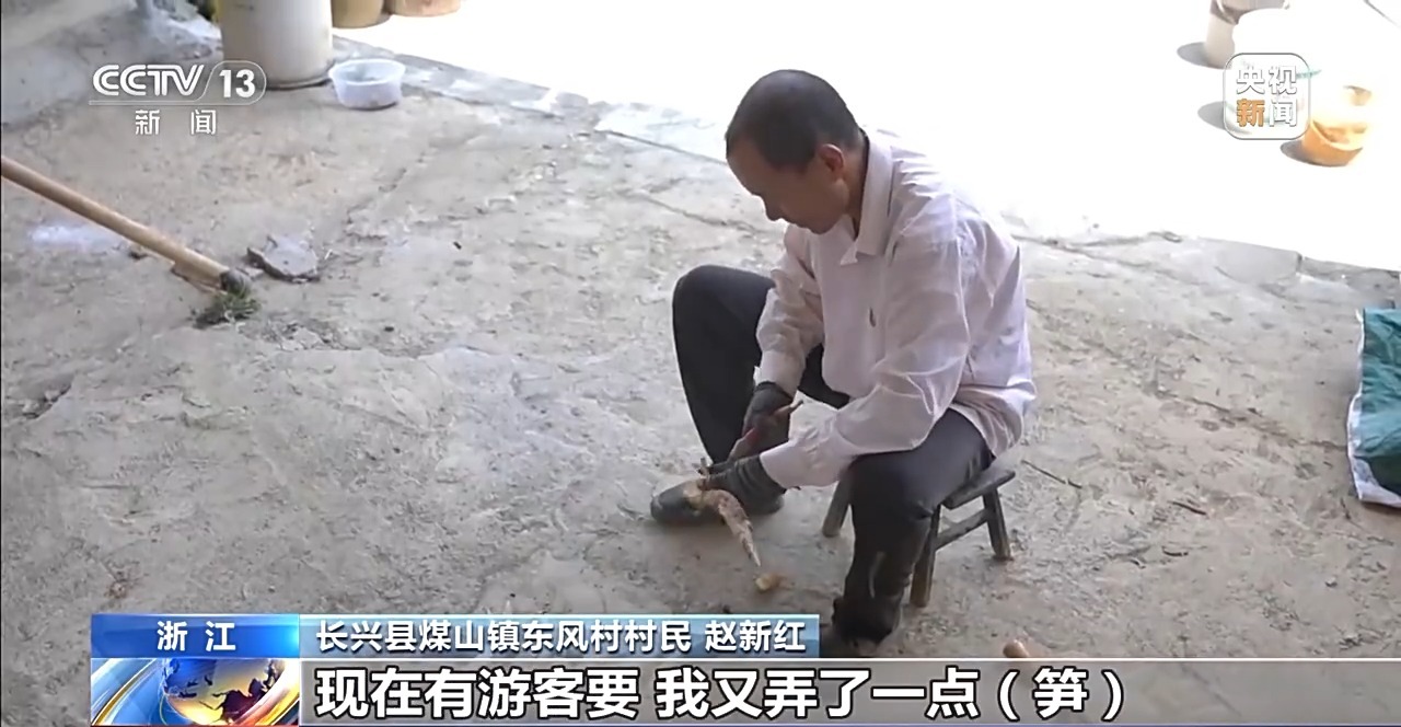 長(zhǎng)興縣煤山鎮(zhèn)東風(fēng)村村民 趙新紅:感覺很好賣,現(xiàn)在有游客要,我又弄了一點(diǎn)筍,把好一點(diǎn)的挑出來(lái),價(jià)格比批發(fā)上門收好多了。