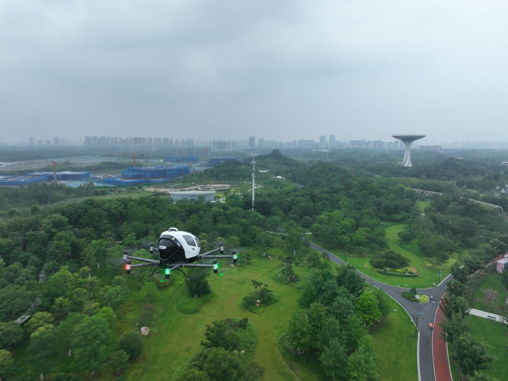 一架電動(dòng)垂直起降航空器在合肥駱崗公園演示飛行。新華社發(fā)(采訪對象供圖)
