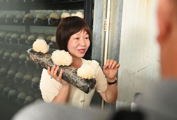 6月26日,寧德晟農農業(yè)開發(fā)有限公司總經理張家巧在介紹智慧菇房生長的古田銀耳。