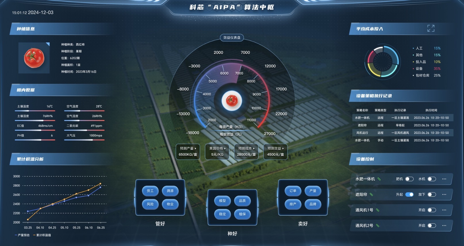 科芯自主研發(fā)的AIPA系統(tǒng),整合了多項新興技術(shù),能夠精準描述作物的生長動態(tài),并作出生產(chǎn)力預測與效益評估。胡建龍形象地比喻:“這就像是給農(nóng)作物配備了一位24小時在線的‘智能管家’,它能根據(jù)作物的需求,自動調(diào)整灌溉、施肥、遮陽等操作,確保作物在最佳環(huán)境中生長。”