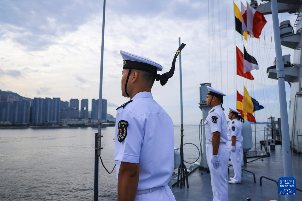 7月3日,中國(guó)海軍山東艦航母編隊(duì)抵達(dá)香港。這是分區(qū)列隊(duì)的湛江艦官兵。新華社發(fā)(馮麗 攝)