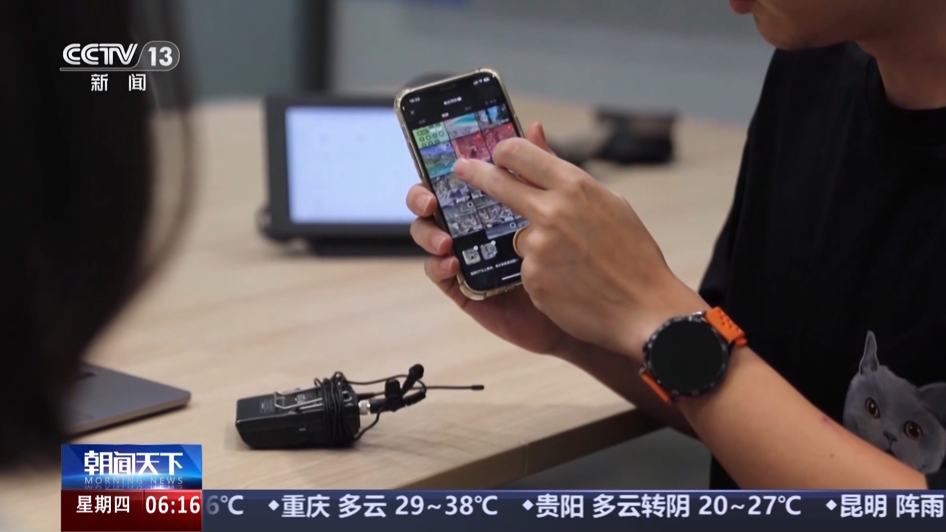 您看這個全景相機,記者拿著一甩,握桿就變成3米長,可以拍出這樣的效果,瞬間“飛出地球”。這個拇指相機,只需把它戴在胸前,就能錄制第一視角的畫面。這個只有手掌大的小方塊,是個飛行相機,它能精準識別人臉,自動跟隨人物進行拍攝。我們的記者第一次使用這些設備,簡單學習就掌握了使用方法,而這些設備的使用場景也非常豐富,一些熱愛戶外運動的專業(yè)人士就用它們拍出了大片。