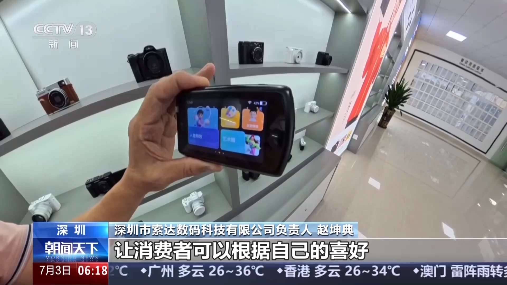 深圳市索達數碼科技有限公司負責人 趙坤典:傳統(tǒng)相機強調的是光學變焦,還有畫質。我們現在引進AI的功能,讓消費者可以根據自己的喜好做出各種各樣的創(chuàng)意編輯。找到一條彎道超車的路子。