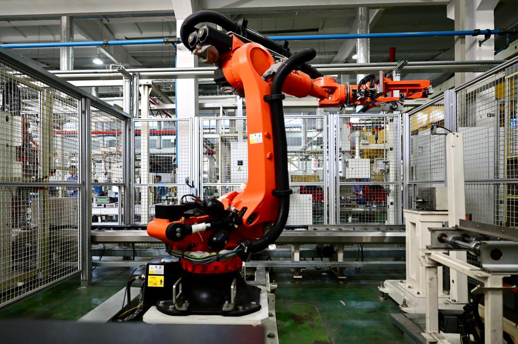 安徽全柴動力股份有限公司的發(fā)動機(jī)智能生產(chǎn)車間一角。新華社記者 周牧 攝