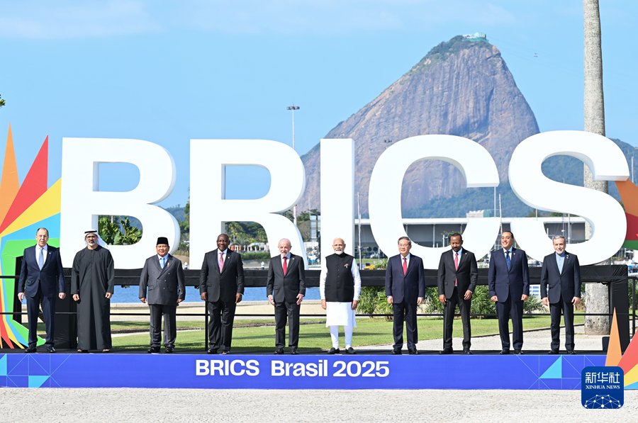 當(dāng)?shù)貢r間7月6日,國務(wù)院總理李強在里約熱內(nèi)盧出席金磚國家領(lǐng)導(dǎo)人第十七次會晤第一階段會議,就“和平與安全、全球治理改革”議題發(fā)表講話。這是與會領(lǐng)導(dǎo)人集體合影。新華社記者 李響 攝