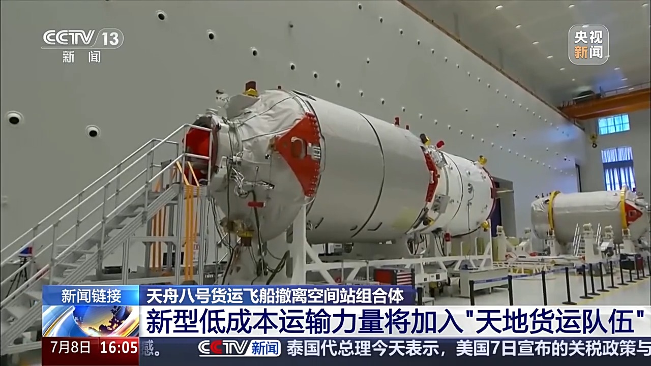 北京時(shí)間2025年7月8日15時(shí)9分,天舟八號貨運(yùn)飛船順利撤離空間站組合體,轉(zhuǎn)入獨(dú)立飛行階段,將于近期擇機(jī)受控再入大氣層。天舟八號貨運(yùn)飛船于2024年11月15日在文昌航天發(fā)射場發(fā)射入軌,共計(jì)在軌運(yùn)行近八個(gè)月,為神舟十九號、二十號乘組提供了物資保障。通過短片,一起回顧天舟八號的任務(wù)過程。