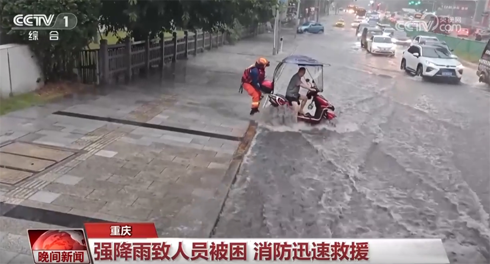 重慶也受到強降雨的影響。在大渡口區(qū)鋼花路紅樓醫(yī)院附近,消防人員發(fā)現(xiàn)一名摩托車騎手被困水中,有被沖走的危險。經過救援,該男子被轉移至安全地帶。據(jù)介紹,目前,大渡口區(qū)消防救援局共處置相關警情16起,出動130余人次參與救援工作。