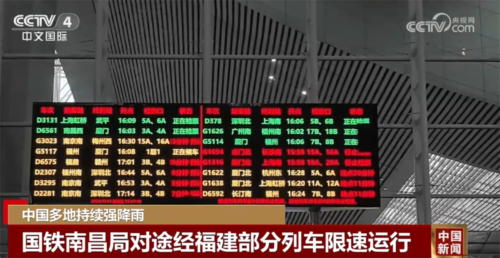 記者從國鐵南昌局了解到,為應對管內(nèi)福建省多地持續(xù)強降雨天氣,11日,在合福高鐵、福廈高鐵、昌福鐵路、溫福鐵路、福廈鐵路等部分區(qū)段啟動暴雨、強對流天氣藍色預警,并對途經(jīng)福廈高鐵、溫福鐵路、福廈鐵路的部分旅客列車采取限速運行等安全措施,途經(jīng)上述區(qū)段的部分旅客列車出現(xiàn)不同程度晚點。鐵路部門將根據(jù)風速雨情動態(tài)調(diào)整列車運行方案,提醒旅客密切關注鐵路12306平臺及車站公告,合理安排出行計劃。