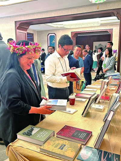 嘉賓在會(huì)場翻閱文史哲書籍。光明日報(bào)記者 阮紫嫣攝/光明圖片