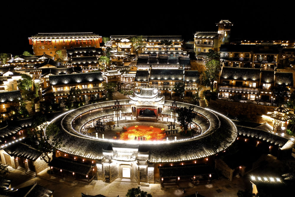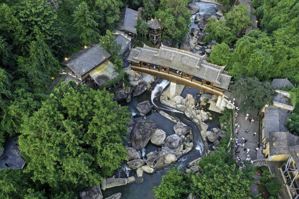 這是7月11日拍攝的望仙谷景區(qū)夜景(無人機照片)。新華社記者 劉金海 攝
