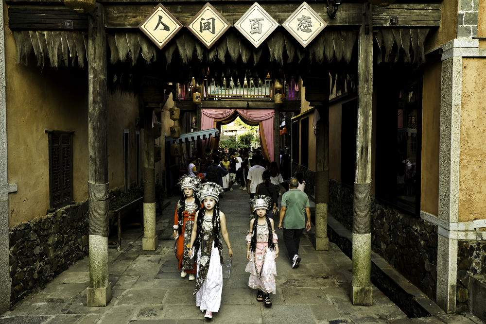 夜幕降臨,記者隨“活力中國調(diào)研行”采訪團(tuán)來到景區(qū),遠(yuǎn)處懸崖燈火璀璨,如影視劇一般的場景在眼前浮現(xiàn)。游客或沉浸式體驗情景劇、舞蹈劇、雜技等演出,或身著古裝拍照打卡,在熱鬧的氛圍里感受“仙俠世界”的浪漫。