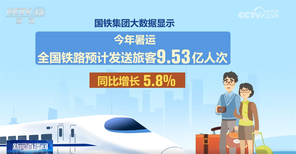 來(lái)自國(guó)鐵集團(tuán)的大數(shù)據(jù)顯示,今年暑運(yùn),全國(guó)鐵路預(yù)計(jì)發(fā)送旅客9.53億人次,同比增長(zhǎng)5.8%。針對(duì)暑期旅游市場(chǎng)需求,多地鐵路部門增開(kāi)旅游列車和銀發(fā)專列,激活暑期旅游消費(fèi)潛能。