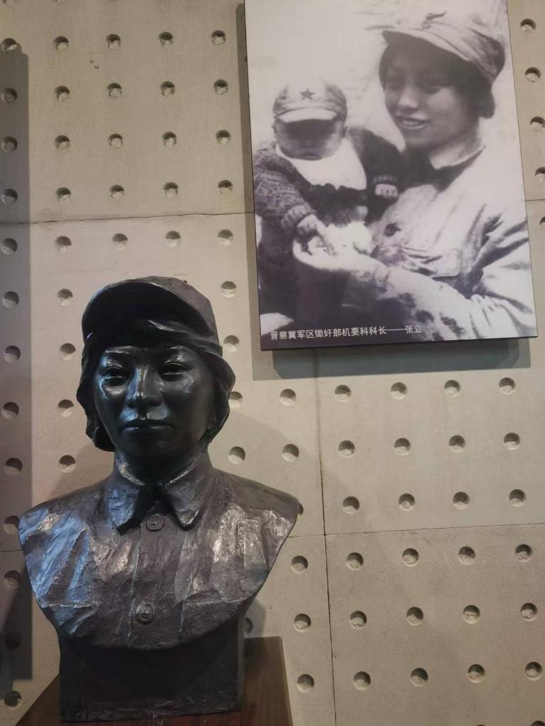 “這位是偉大的母親張立,她是晉察冀軍區(qū)鋤奸部機(jī)要科科長(zhǎng)。在阜平的‘柏崖慘案’中,她不幸落入敵人手中,面對(duì)日軍的嚴(yán)刑拷打,她寧死不屈,日軍將她不滿三個(gè)月大的小兒子扔進(jìn)滾燙的開水鍋中,活活煮死。張立也被砍掉一只右臂后,被用刺刀挑死,犧牲時(shí)年僅23歲?!睂O旗綺動(dòng)情地向參觀者介紹。