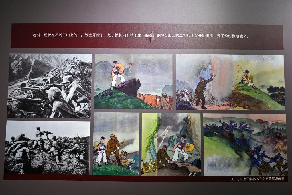 在距離狼牙山不遠(yuǎn)的王二小紀(jì)念館里,循環(huán)播放著這首耳熟能詳?shù)母枨陡璩》排@伞贰?/p>
