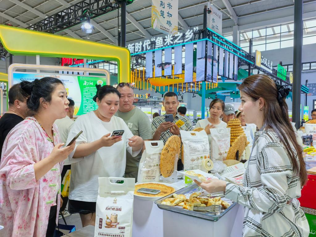 客商在第七屆中國糧食交易大會上品嘗新疆美食。新華社記者武江民 攝