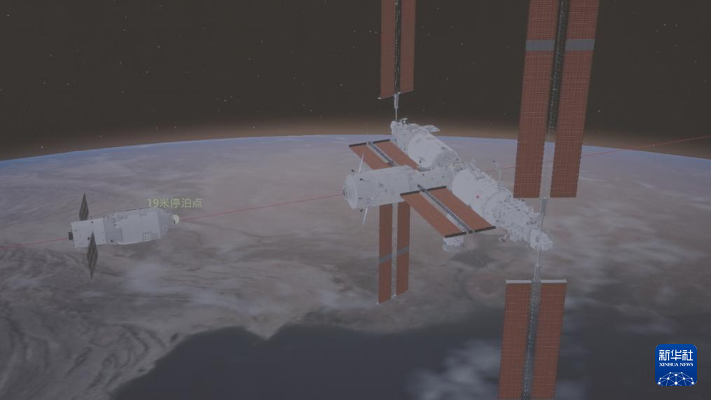 7月15日在北京航天飛行控制中心拍攝的天舟九號貨運飛船向空間站組合體靠攏的畫面。新華社發(fā)(周柯毅 攝)