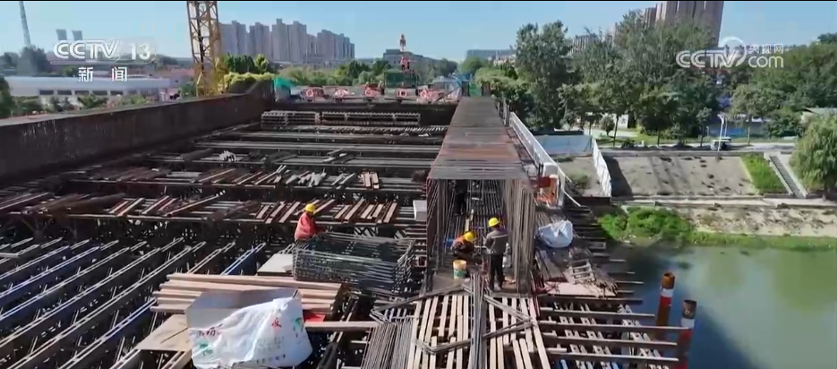 持續(xù)的晴熱天氣給河南各地的重點(diǎn)工程項(xiàng)目和生產(chǎn)一線建設(shè)也帶來“烤”驗(yàn)。這是沙潁河周口至省界航道提升工程通濟(jì)大道橋施工現(xiàn)場(chǎng),工人們正在安裝橋面鋼筋。工人們穿戴了一款特殊的空調(diào)防護(hù)服,通過內(nèi)置風(fēng)扇和冰袋循環(huán)系統(tǒng)進(jìn)行降溫。