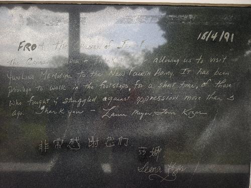 這是瓊·尤恩的外孫女莎娜在1991年回訪位于安徽省宣城市涇縣云嶺鎮(zhèn)的新四軍軍部舊址時(shí)留下的感言,已被鐫刻在新四軍軍部(司令部)舊址內(nèi)。感言中寫道:“感謝讓我們有機(jī)會參觀云嶺新四軍紀(jì)念館。能短暫追隨那些多年前為反抗壓迫而戰(zhàn)斗的英雄足跡,我們深感榮幸。謝謝?!?新華社記者 郭晨 攝