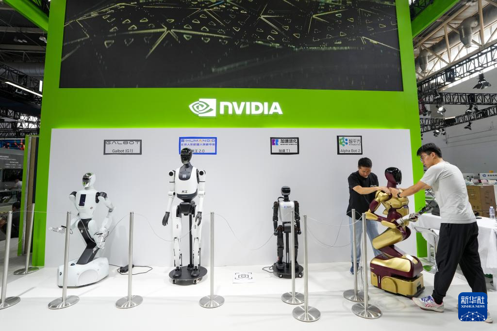 7月14日,在第三屆中國(guó)國(guó)際供應(yīng)鏈促進(jìn)博覽會(huì)數(shù)字科技鏈展區(qū)英偉達(dá)公司展位,工作人員在布置展品。