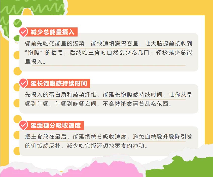 你知道嗎?吃飯時先吃什么、后吃什么,其實對健康影響不小!合理的飲食順序,能幫助我們更好地消化吸收、穩(wěn)定血糖,還能控制體重。