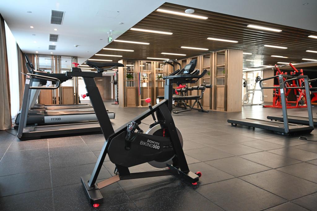 8月3日,在成都世運(yùn)會運(yùn)動(dòng)員村內(nèi)拍攝的運(yùn)動(dòng)員健身房。新華社記者 胥冰潔 攝
