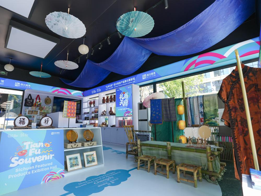 8月3日,在成都世運(yùn)會運(yùn)動(dòng)員村A區(qū)拍攝的四川特色產(chǎn)品展示展銷館。新華社記者 王曦 攝