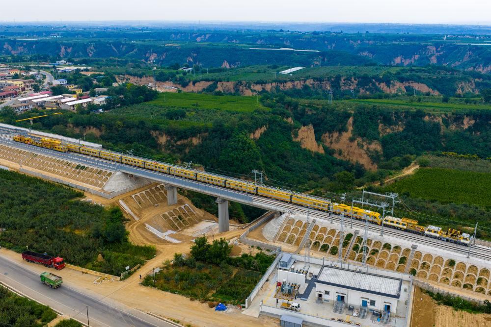 西延高鐵正在有序推進(jìn)電氣化設(shè)備的精調(diào)。(中國鐵路西安局集團有限公司供圖)