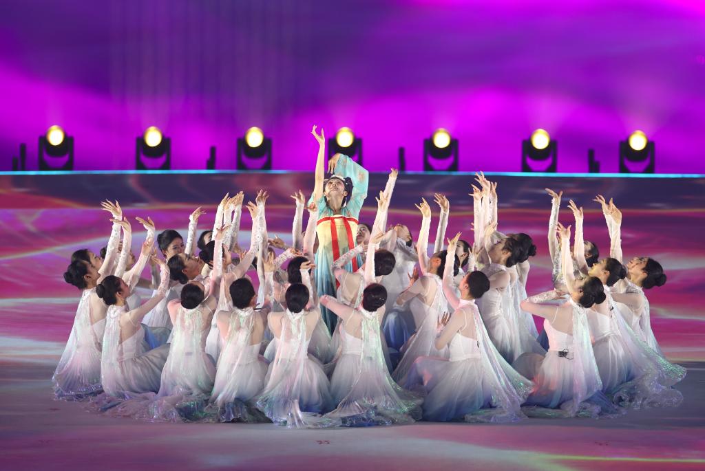 8月7日,演員在開(kāi)幕式上表演。新華社記者 劉坤 攝