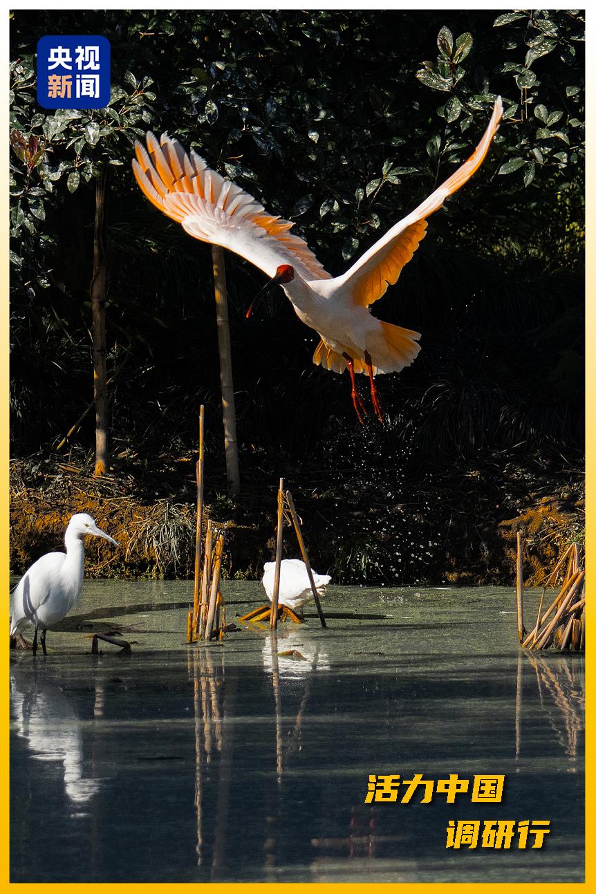 湖州德清通過(guò)退耕還湖、水體治理、濕地修復(fù),為朱鹮營(yíng)造了理想棲息地。