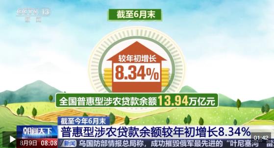 截至6月末,全國普惠型涉農(nóng)貸款余額13.94萬億元,較年初增長8.34%;全國糧食重點(diǎn)領(lǐng)域貸款余額5.1萬億元,較年初增長13.5%。今年1-6月全國新發(fā)放的普惠型涉農(nóng)貸款平均利率同比下降0.61個百分點(diǎn),繼續(xù)保持下降趨勢。