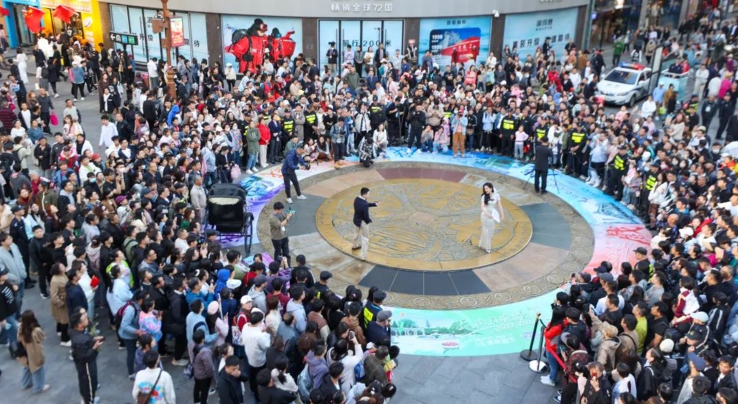 “抬頭看!茶花女在陽(yáng)臺(tái)唱《飲酒歌》!”今年端午假期,意式風(fēng)情區(qū)洋樓陽(yáng)臺(tái)秒變歌劇包廂,觀(guān)眾不用買(mǎi)票,端著冰淇淋就能聽(tīng)威爾第。同一時(shí)刻,金街大銅錢(qián)廣場(chǎng)《日出》沉浸式上演,“陳白露”從民國(guó)海報(bào)里走下來(lái),旗袍一擺,鉆進(jìn)人群;古文化街戲樓前,群口快板《花板唱響文化街》竹板翻飛,游客還沒(méi)反應(yīng)過(guò)來(lái),已被拉進(jìn)“包袱”里。