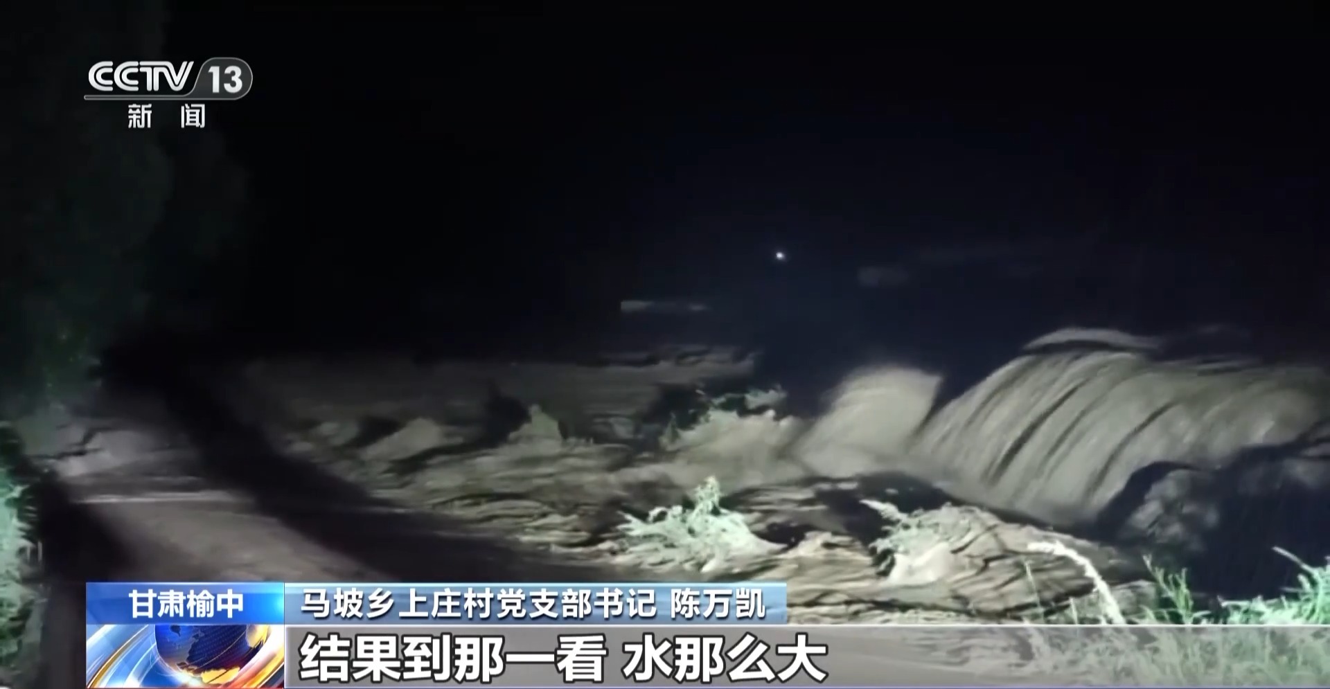 馬坡鄉(xiāng)上莊村黨支部書記 陳萬(wàn)凱:我是慌呀,慌得我就出來(lái)一直在這里轉(zhuǎn)著,轉(zhuǎn)著我就看見(jiàn)變壓器上冒開(kāi)火了,想看一下變壓器咋回事,結(jié)果到那一看,水那么大。