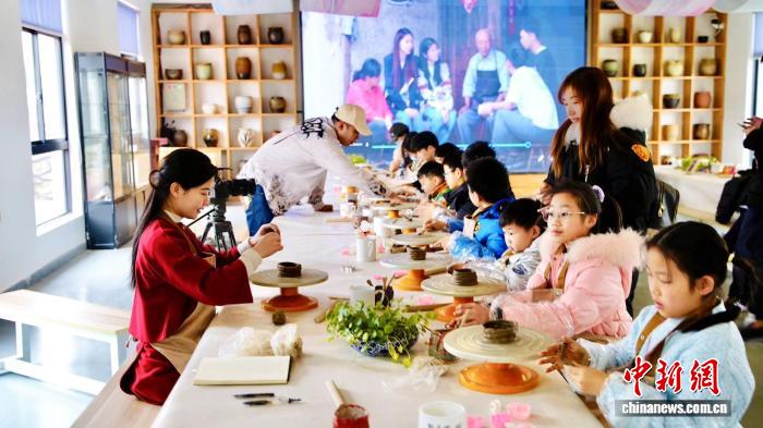 黃彬彬帶領(lǐng)團(tuán)隊(duì)在豬圈改造的窯文化館上陶藝課。受訪者供圖