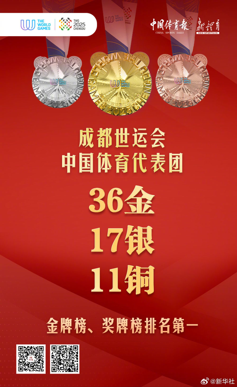 中國體育代表團(tuán)位居金牌、獎(jiǎng)牌榜首位!為運(yùn)動(dòng)員們點(diǎn)贊!