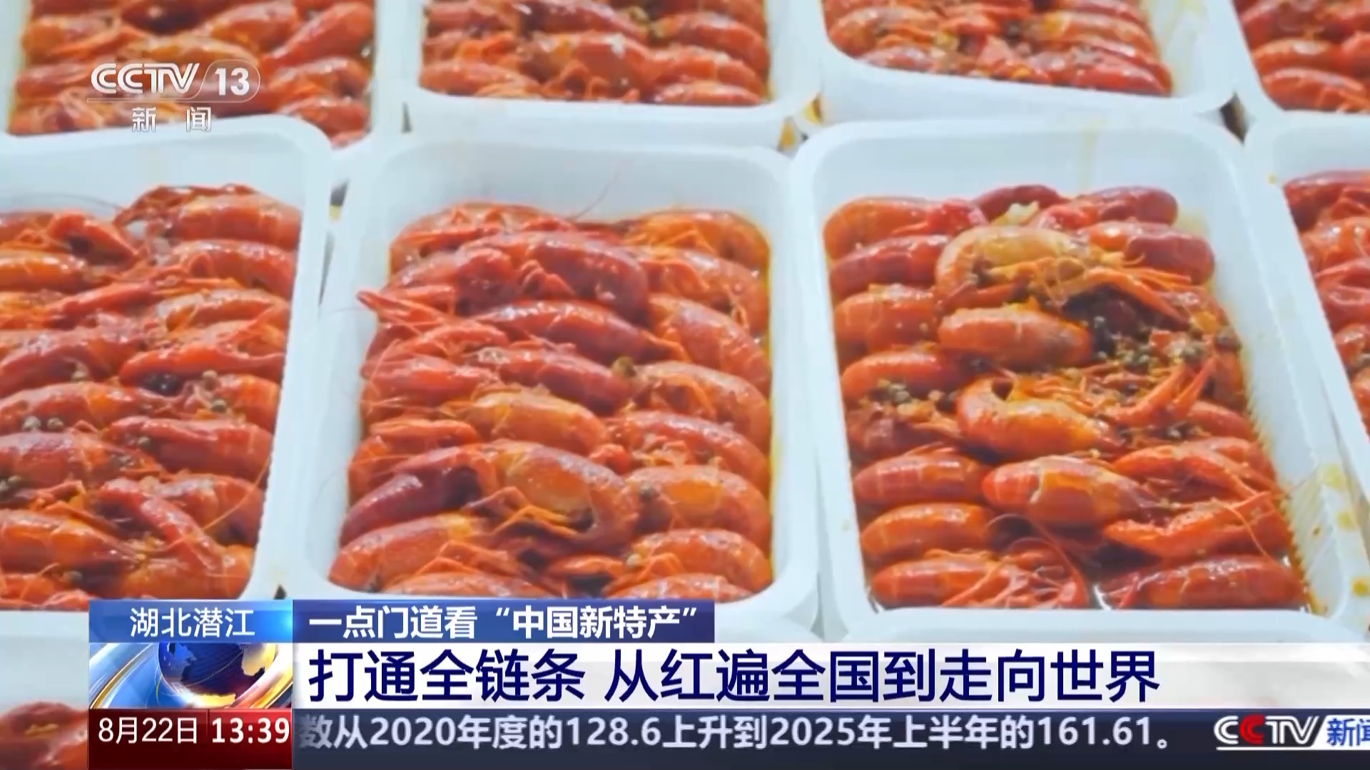 從這里出發(fā),依靠滬渝高速、234國道、318國道等交通動脈,潛江小龍蝦的物流直達(dá)專線,只需4到14小時就能把鮮活的潛江小龍蝦送到全國600多個城市、1200多個服務(wù)網(wǎng)點。作為全國最大的小龍蝦交易中心,2025年上半年,這里的鮮活小龍蝦交易量高達(dá)17.7萬噸,交易產(chǎn)值更是達(dá)到75.27億元。