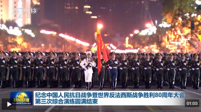記者從中國人民抗日戰(zhàn)爭暨世界反法西斯戰(zhàn)爭勝利80周年紀念活動新聞中心獲悉,8月23日17時至8月24日5時,北京天安門地區(qū)舉行了紀念中國人民抗日戰(zhàn)爭暨世界反法西斯戰(zhàn)爭勝利80周年大會第三次綜合演練。據(jù)介紹,這是一次全流程、全要素預演,也是紀念大會最后一次綜合演練,包括紀念大會儀式(含閱兵)、轉(zhuǎn)場、觀眾組織及應(yīng)急處置等各項內(nèi)容,重點檢驗了各流程、各環(huán)節(jié)的銜接配合,為正式活動的成功舉辦打下堅實基礎(chǔ)。